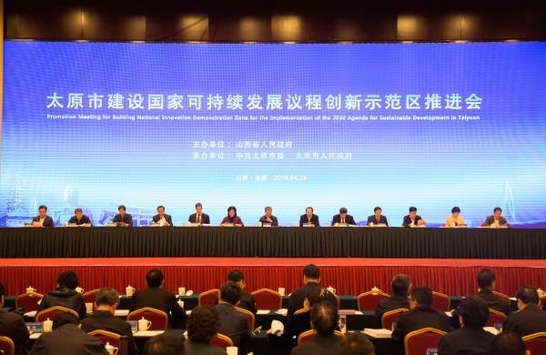 4月24日,太原市建设******可持续发展议程创新示范区推进会举行。省委常委、市委书记罗清宇,副省长王一新,科技部社会发展科技司司长吴远彬分别讲话。科技部社会发展科技司副巡视员孙成永宣读《国务院关于同意太原市建设******可持续发展议程创新示范区的批复》。省政协副主席、省科技厅厅长谢红宣读联合国贺信。联合国开发计划署全球合作高级政策顾问薄嘉德致辞。市委副书记、市长耿彦波主持会议。